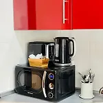 Goście mają dostęp do wyposażonej kuchni z czajnikami elektrycznymi, lodówką i przyborami kuchennymi do samodzielnego przygotowywania posiłków. W niewielkiej odległości od przystanku autobusowego Santa Susana - Instituto.